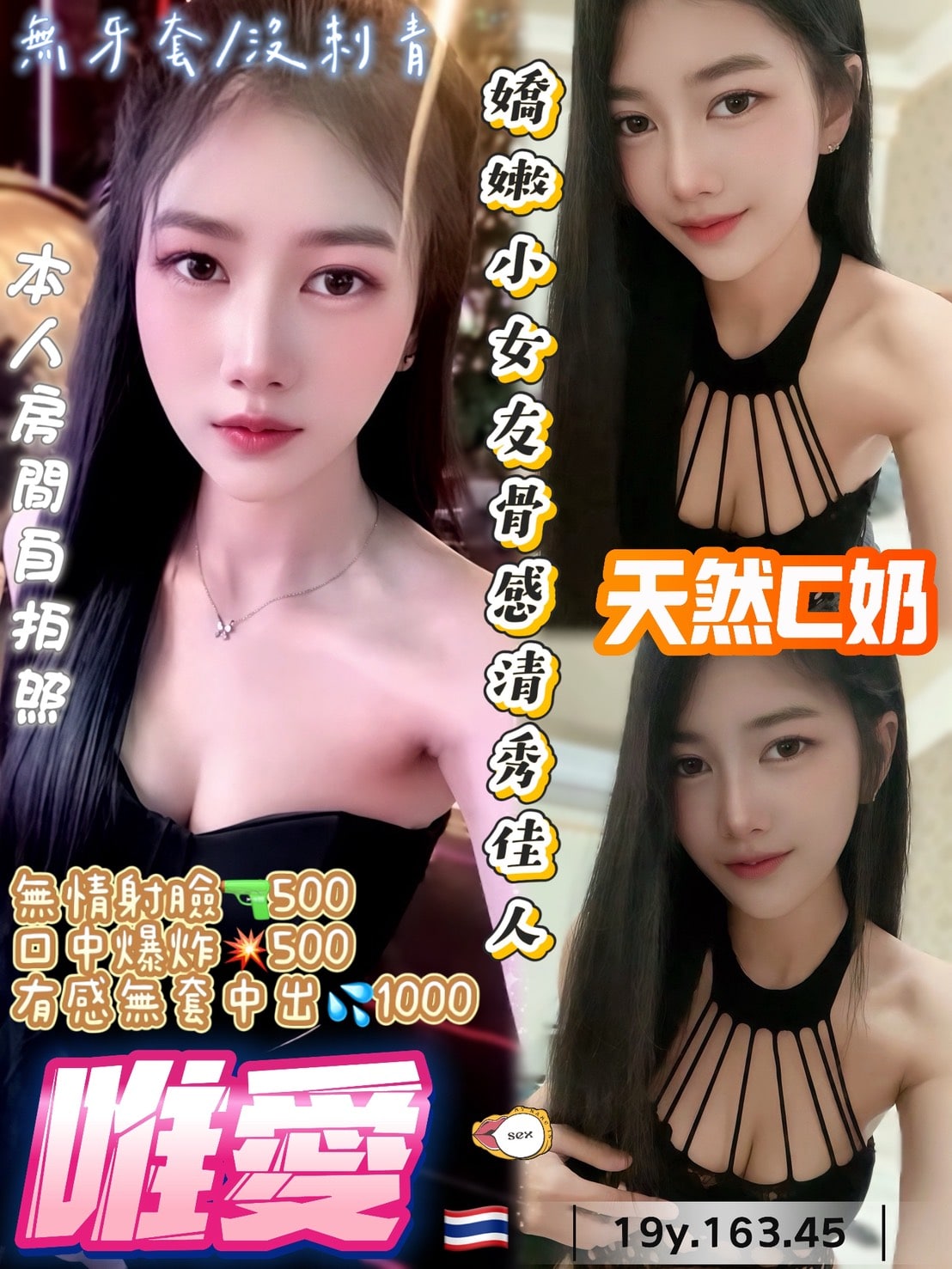 口爆 - NT$500, 顏射 - NT$500, 無套內射 - NT$1000