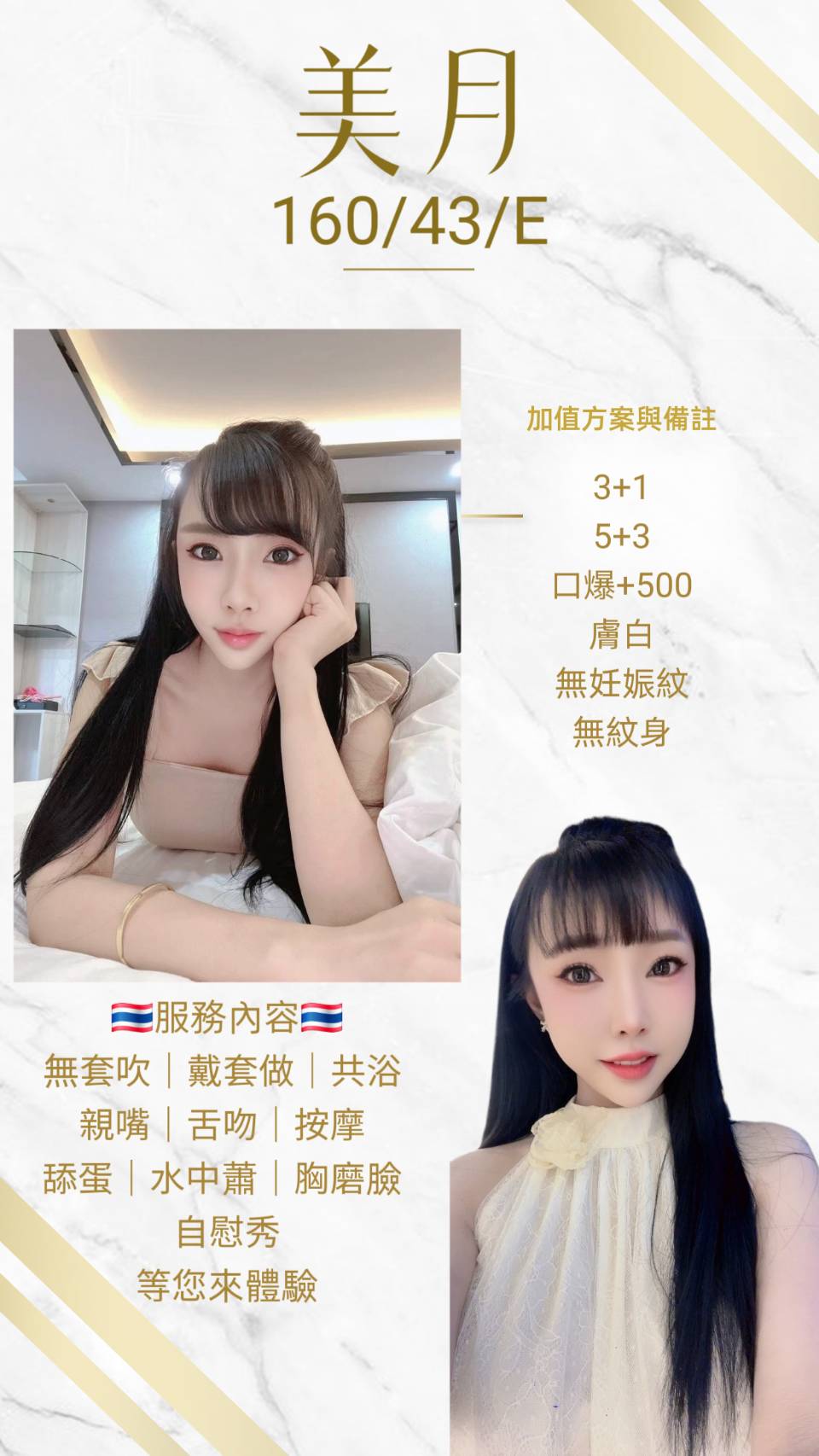 胸磨臉, 自慰秀, 絲襪(自備), 情趣跳蛋(自備), 買3節送1節, 買5節送3節(包夜)